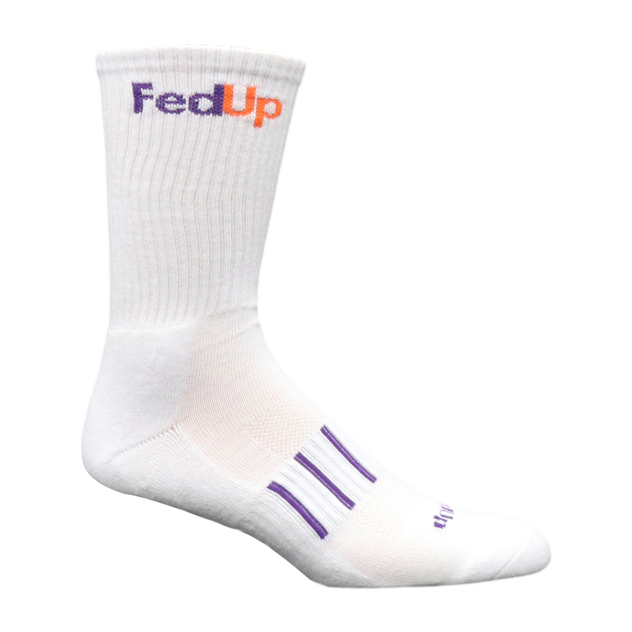 Are you Fed-up? Tired of early Monday mornings, crazy conference calls, and are no longer willing to take any more crap? Then these babies are for you! Be incognito with your “FedUp-ness” underneath clothing or wave it proudly on the side of a custom woven, performance-driven Moxy Crew sock! Of course, coming with all the Moxy Performance Crew features; reciprocated heel and toe, ventilator mesh top, and Moxy Performance Foot! Perfect for skaters, deadlifters.