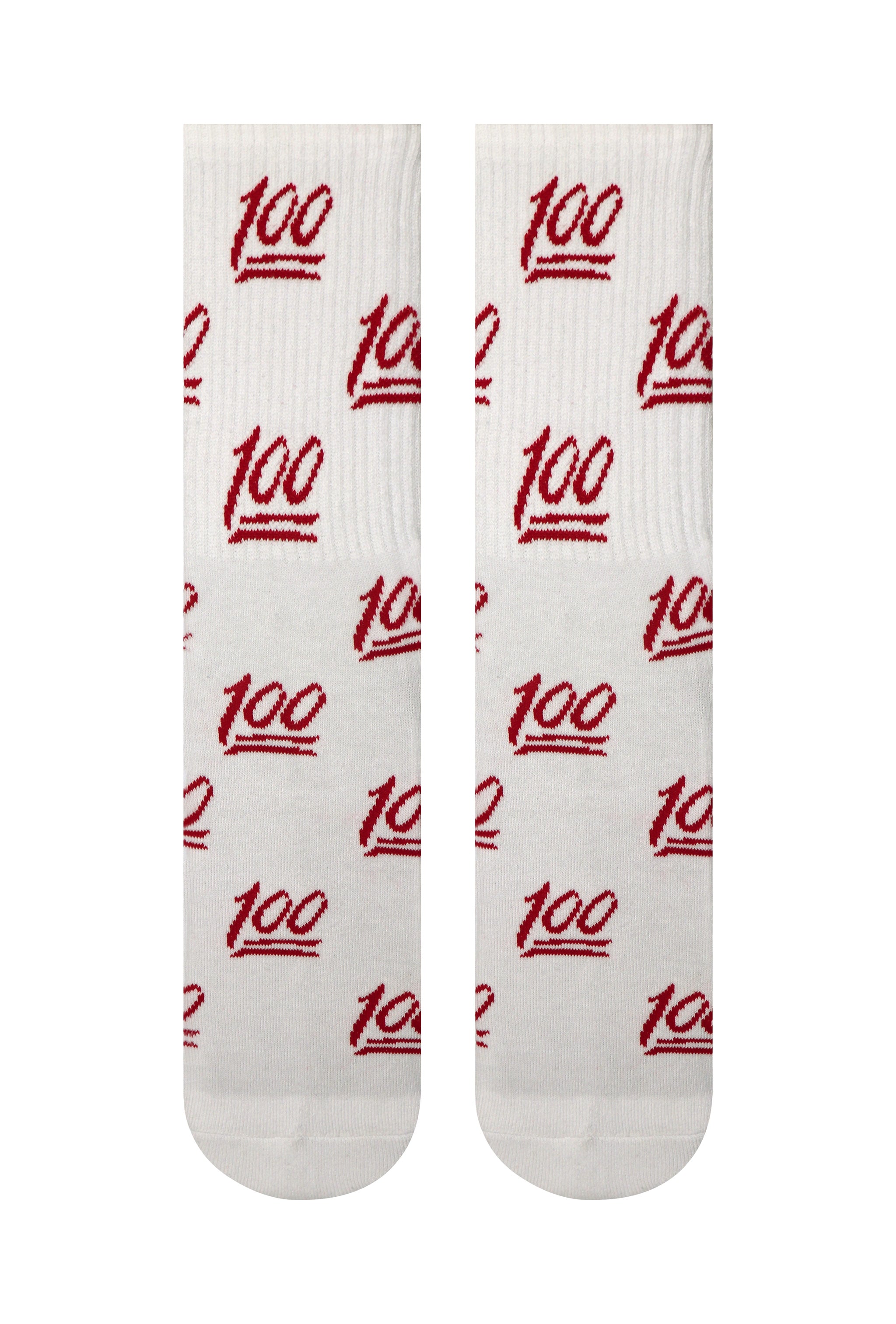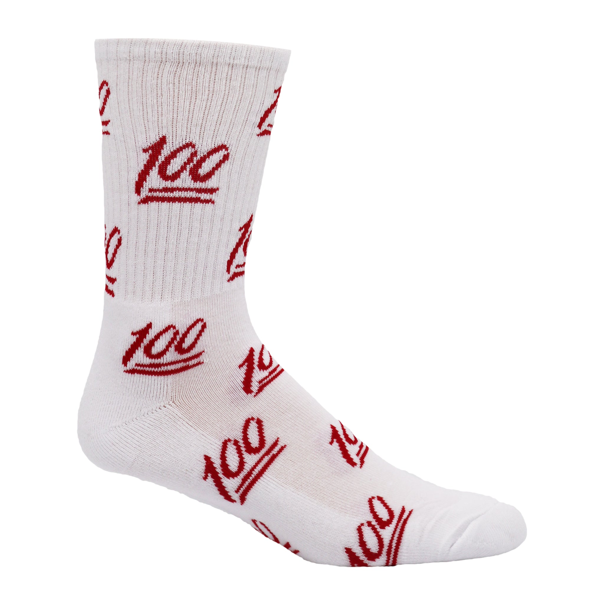 White with Red Keep It 100 Performance Athletic Crew Socks Experience peak performance and comfort with these premium athletic crew socks. Crafted from a breathable cotton blend, these mid-calf socks provide arch support and help keep feet dry and odor-free during activity. The white fabric is accented with a bold red "Keep It 100" logo on the sides, demonstrating your commitment to excellence. Whether training for a marathon or simply staying active, these socks are designed to handle high performance. The reinforced heel and toe provide durability in high-impact areas. A secure, non-slip fit means the socks won't bunch up in your shoes. Thoughtful details like seamless toes prevent irritation even during long workouts. For those constantly striving to improve and push their limits, these athletic crew socks are the perfect complement. Show your dedication with the "Keep It 100" logo and enjoy the advanced features that allow you to focus on your performance. Stay comfortable, supported and confident during any activity in these premium white and red socks. Achieve your goals and keep it 100 in style.