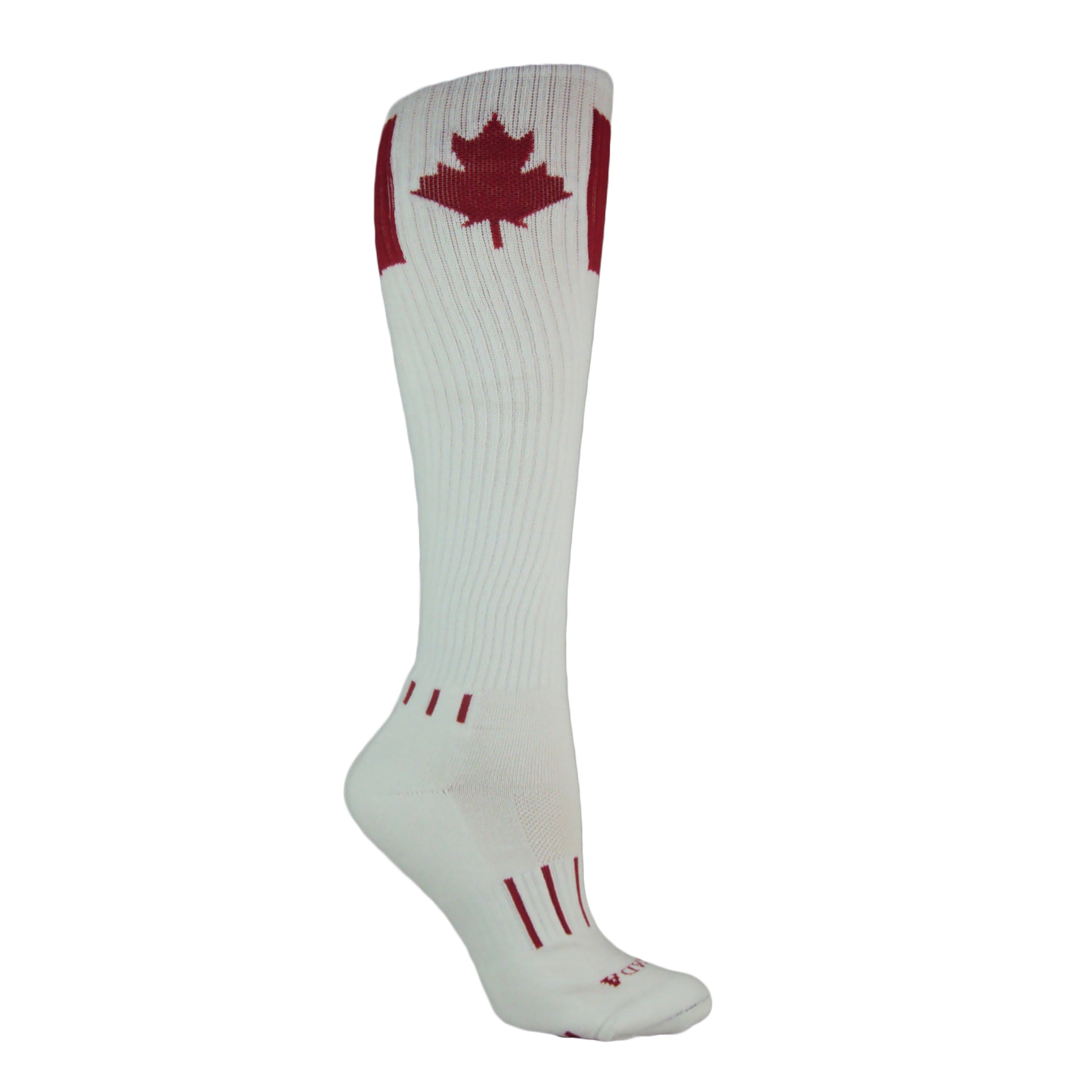 Introducing our premium White Knee-High Socks featuring the iconic Red Maple Leaf Canada Flag design. Crafted with the finest materials for exceptional comfort and durability, these socks are a perfect blend of style and patriotism. Whether you're a proud Canadian or simply appreciate the beauty of the Maple Leaf flag, these socks are a must-have addition to your wardrobe. Designed for both fashion and function, our Knee-High Socks provide the perfect fit and support for all-day wear. Elevate your outfit with a touch of Canadian pride and make a statement wherever you go. Show your love for Canada in style with these high-quality socks that are sure to turn heads. Don't miss out on the opportunity to own a pair of these premium White Knee-High Socks featuring the Red Maple Leaf Canada Flag design. Add them to your collection today and step out in style with confidence. Order now and experience the perfect blend of comfort, quality, and patriotism.