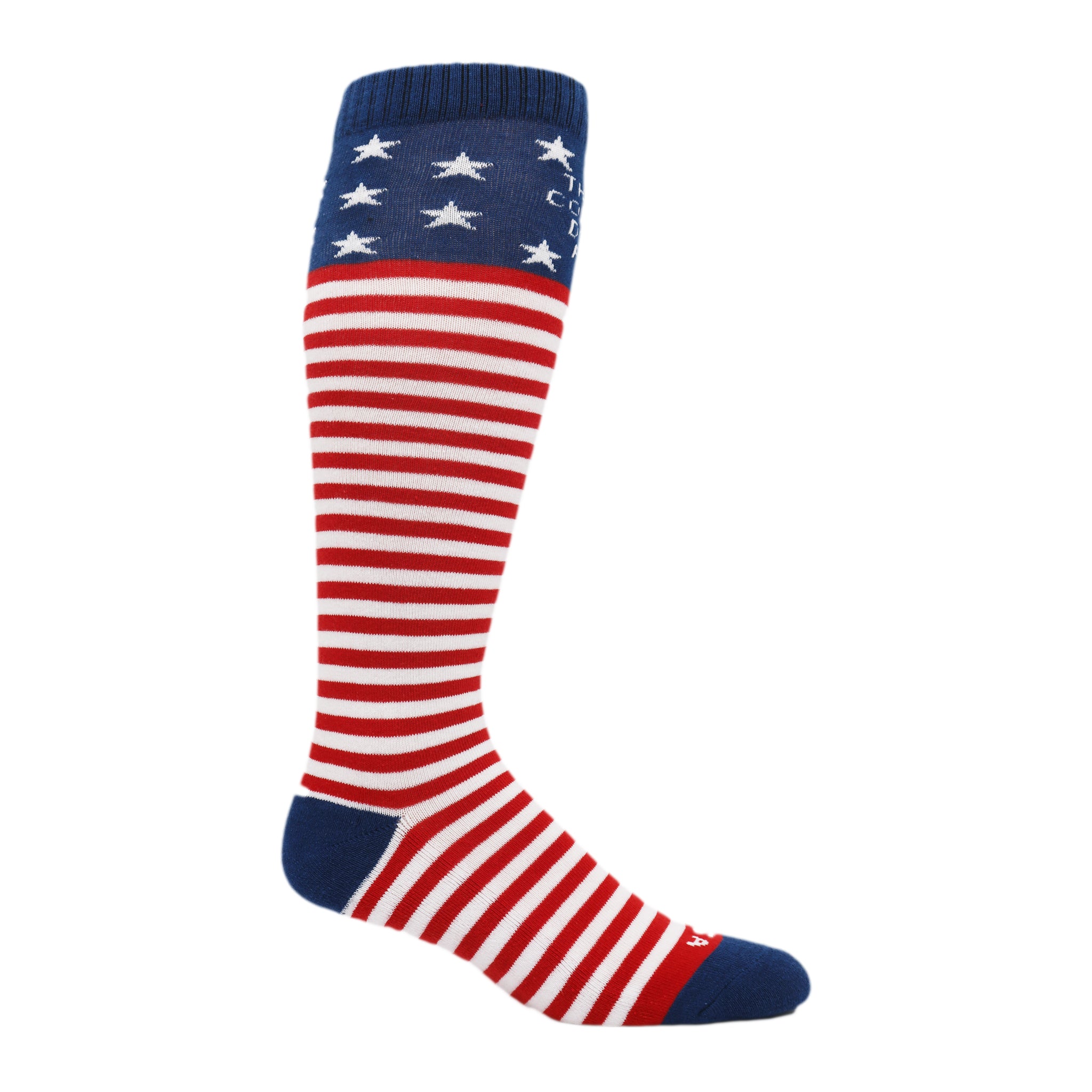 THESE COLORS DON’T RUN!!! These American Patriot Knee socks feature the stars and stripes of the United States on the entire body of this custom woven sock. Perfectly stitched and made in the good ole’ USA, our performance knee socks come with the expected MOXY quality standards: premium arch support, reciprocated heel and toe, ventilator mesh, and as always that magical feeling when you slip them over your toes. Show your true patriotism and the world that you love FREEDOM and LIBERTY!!!