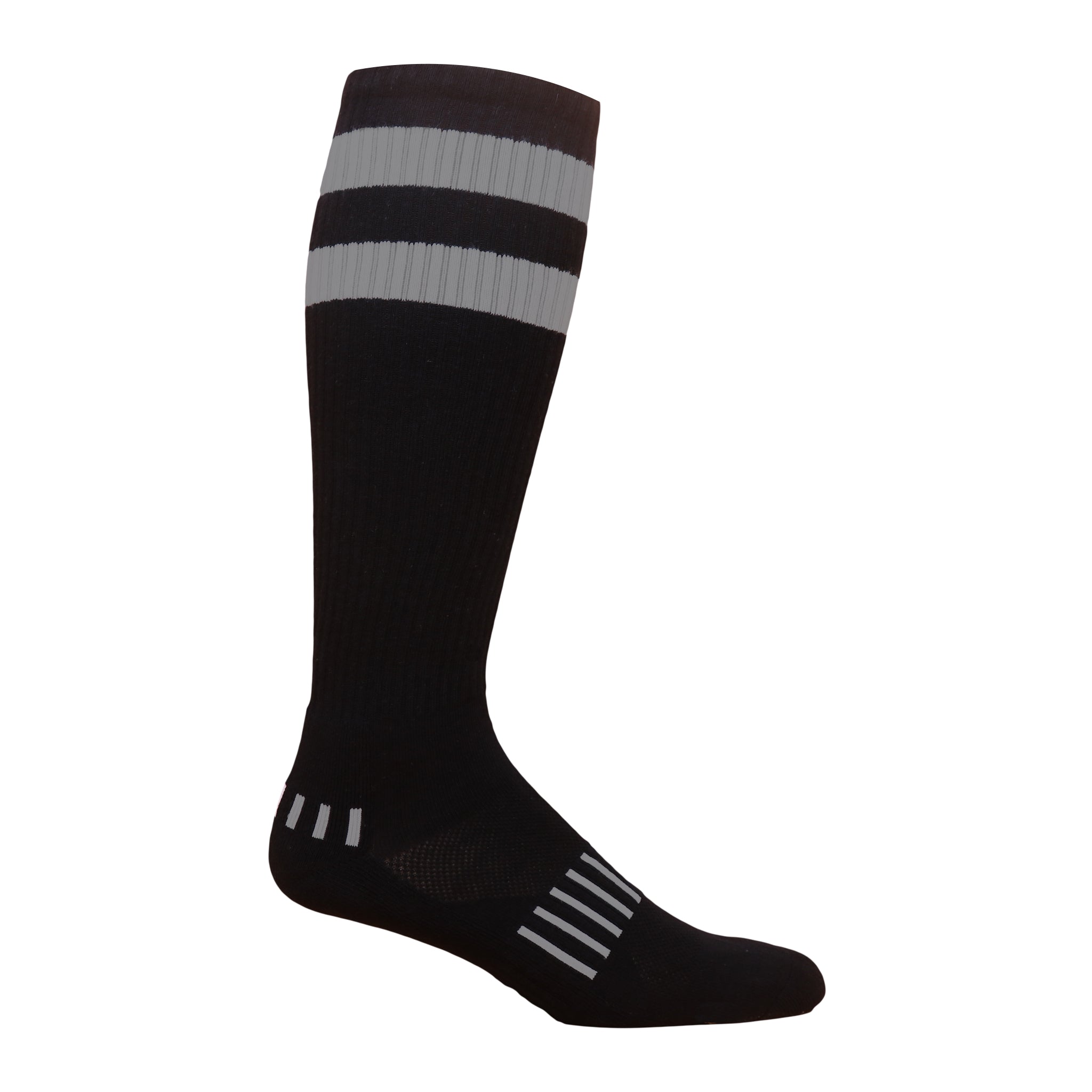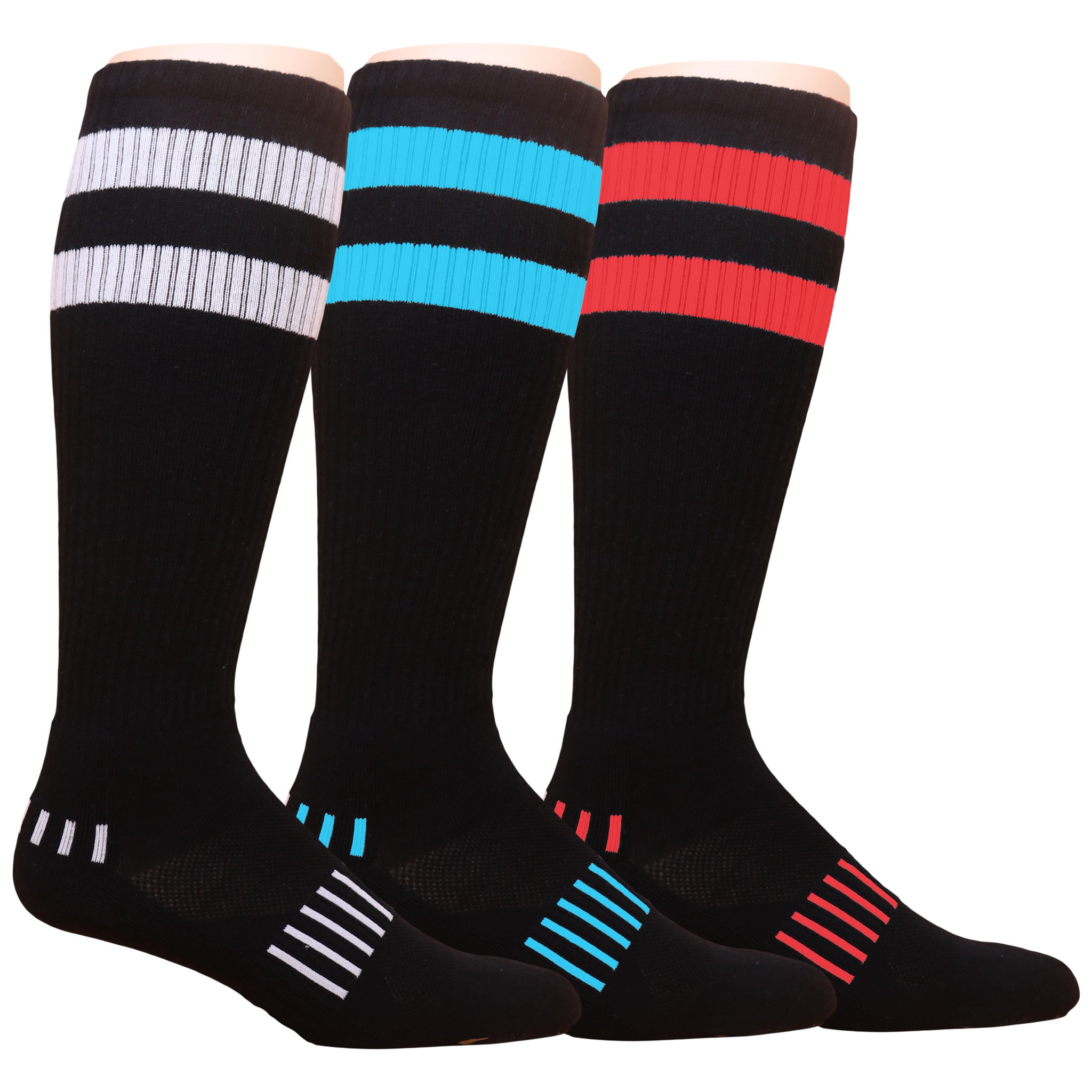 The vintage stripe pattern gives a nod to the styles of decades past. Whether practicing, playing, or cheering from the sidelines, these socks will keep you comfortably covered. Take advantage of this opportunity to purchase a 3-pack of Black and Pink Vintage 70's Stripes Soccer Knee-High Socks. A stylish yet practical addition to any soccer wardrobe or fan collection. Shop now to enjoy these classic striped socks all season long.