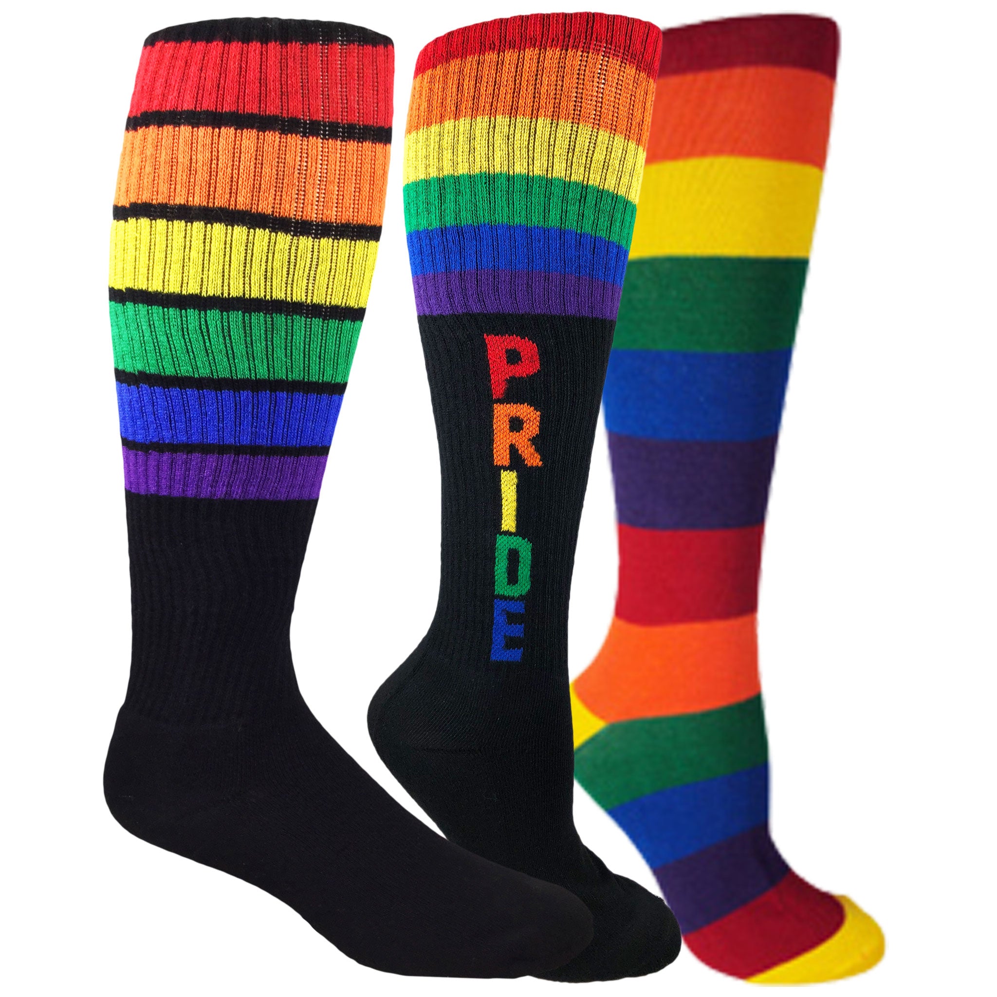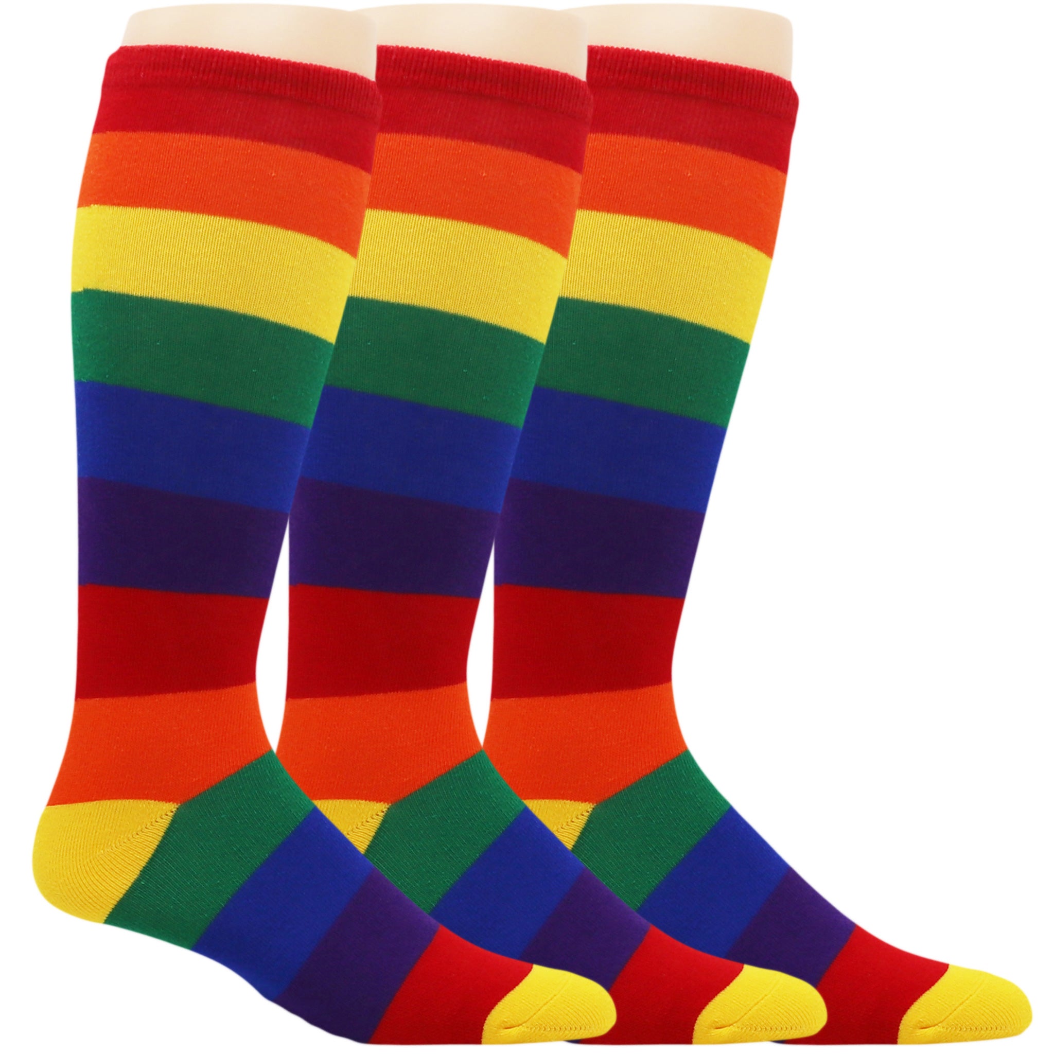 Ultimate Rainbow Stripes Performance Fitness Knee-High Socks! Made from premium moisture-wicking fabric, these socks will keep your feet cool and dry during any workout. The rainbow stripes add a fun pop of color to your gym attire. The knee-high length offers extra coverage and support for your calves and shins. With arch and ankle compression, these socks help increase blood circulation and reduce fatigue. The heel and toe are reinforced for durability. Whether you're running, cycling, hiking or doing yoga, these socks provide the ultimate in comfort and performance. Available in a convenient 3-pack, you'll always have a fresh pair ready to go. Order now and take your workout to the next level while making a vibrant style statement!